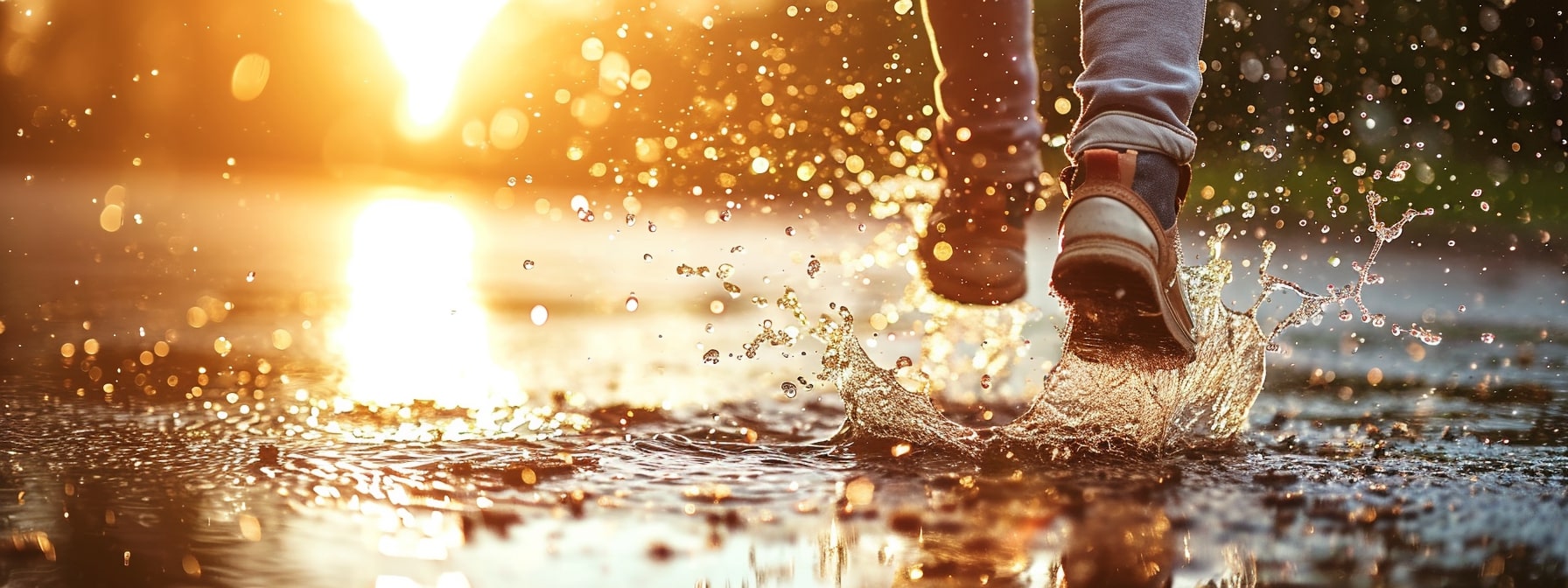Clap, clap, clap ! Il ne se lasse pas de piétiner et sauter dans les grosses flaques d’eau qu’on dirait vivantes.